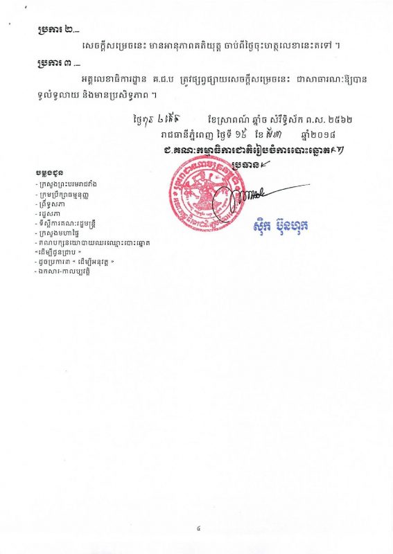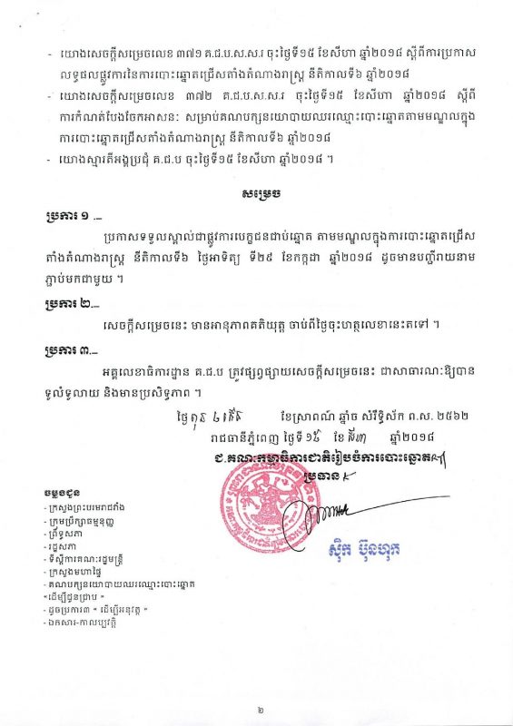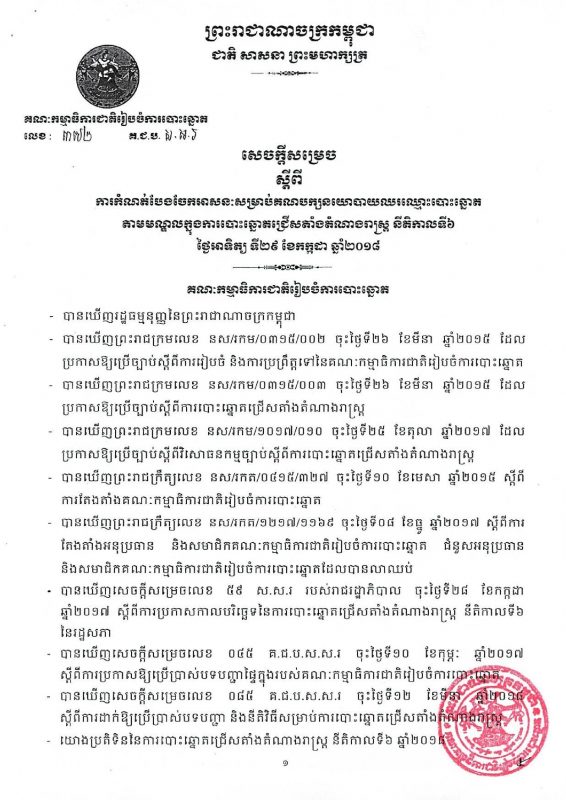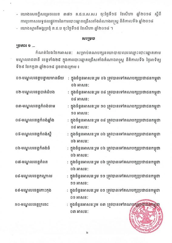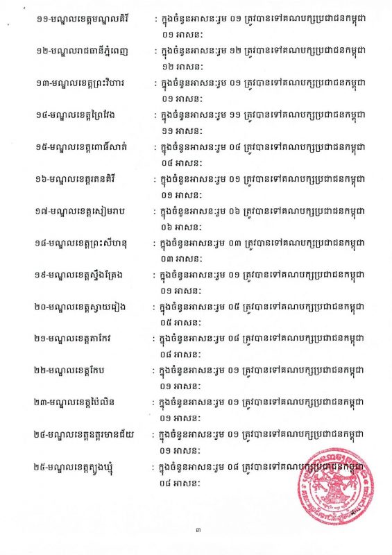 ខាងក្រោមជាសេចក្តីប្រកាសលទ្ធផលផ្លូវការនៃការបោះឆ្នោត ដោយ គ.ជ.ប៖