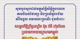 សូមបួងសួងដល់វត្ថុស័ក្តិសិទ្ធិក្នុងលោកតាមបីបាច់ថែរក្សា សម្តេចកិត្តិព្រិទ្ធបណ្ឌិត ប៊ុន រ៉ានី ហ៊ុនសែនក្នុងខួបកំណើតគម្រប់៦៣ឆ្នាំ ឈានចូល៦៤ឆ្នាំ