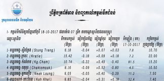 ស្ថានភាពកំពស់ទឹកជំនន់ នៅតាមបណ្ដាស្ថានីយជលសាស្ត្រនានា ប្រចាំថ្ងៃទី១៨ ខែតុលា