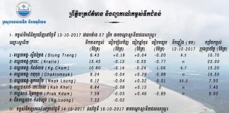 ស្ថានភាពកំពស់ទឹកជំនន់ នៅតាមស្ថានីយជលសាស្ត្រនានា ប្រចាំថ្ងៃទី១៧ ខែតុលានេះ!