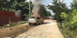 ចោរលួចឡានឡិចស៊ីពីបុរីពិភពថ្មី បើកបុកម៉ូតូបណ្តាលអោយឆាបឆេះផ្អើលប្រជាពលរដ្ឋ ខណះសមត្ថកិច្ចតាមប្រមាញ់