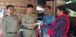 អង្ករនឹងថវិកាប្រគល់ជូនគ្រួសារមន្រ្តីនគរបាលរងគ្រោះដោយសារអគ្គីភ័យ