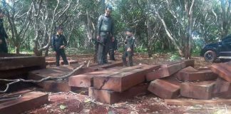 គំនរឈើកកោះដែលឈ្មួញលាក់ទុកត្រូវកម្លាំងកងរាជអាវុធហត្ថរឹបអូសប្រគល់ឲ្យជំនាញរដ្ឋបាលព្រៃឈើ
