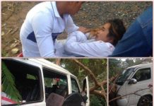 កំពុងបើកបរដេកមួយភាំងភ្ញាក់ឡើងក្បាលជាប់ដើមឈើ