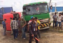 រថយន្តដឹកកុងតឺន័រម៉ាក HINO ក្រឡាប់ដាច់ក្បាលធ្លាក់មកលើដីច្រង៉ាងបន្ទាប់ពីបើកបុកពីក្រោយរថយន្តMITSUBISHI
