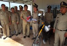 នាយឧត្តមសេនីយ៍សន្តិបណ្ឌិត នេត សាវឿន អគ្គស្នងការនគរបារជាតិផ្តល់ម៉ូតូប្រដេញ៣គ្រឿងដល់នគរបាលខេត្តព្រះសីហនុទុកសំរាប់ការពារសន្តិសុខ